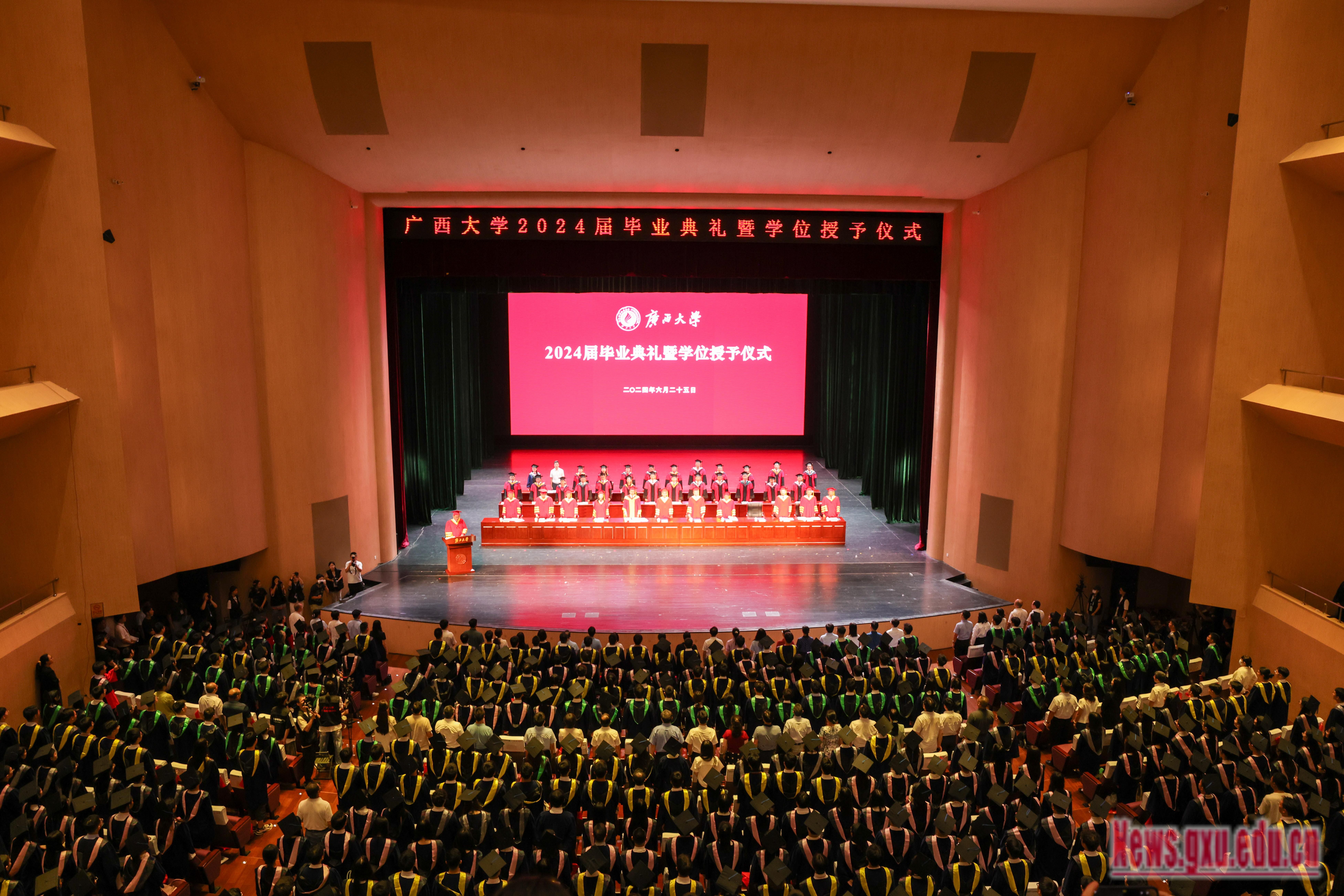 GXU hold the 2024 Graduation Ceremony and Degree Conferral Ceremony on June 25, 2024 at the main venue, Huixuetang Hall, and 60 branch venues across the campus. The event honored a total of 9,619 graduates, comprising 5,260 undergraduates, 4,237 master's students, and 122 doctoral students.The main venue of the 2024 Graduation Ceremony GXU leaders attended the graduation ceremonyWang Naixue, Vi...