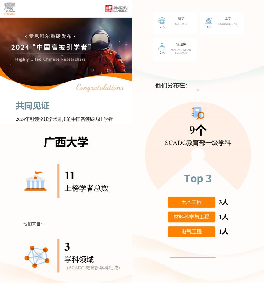 11 นักวิชาการจากมหาวิทยาลัยกว่างซี ติดอันดับ “นักวิชาการจีนที่ได้รับการอ้างอิงสูงประจำปี 2024” โดย เอลส์เวียร์ (Elsevier)