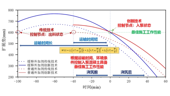 Introduction: Centering on the working performance control of infrastructure concrete at the cast-in-place pile construction node, the project studied loss rule of the working performance of newly mixed concrete during transportation under different ambient temperatures, and revealed the influence mechanism of temperature, slow release of admixtures and early hydration of cementitious materials on loss of working performance of freshly mixed concrete under different mix ratio parameters. The evolution model of concrete working performance under different environmental conditions is established, which can accurately predict the working performance change rule of concrete. Aiming at the working performance control requirements of concrete at the cast-in-place pile construction node, the working performance of newly mixed concrete is adjusted, so that the bad conditions of dry, hard, segregation and bleeding do not occur when concrete is transported to the site for construction, so as to ensure the quality of concrete.