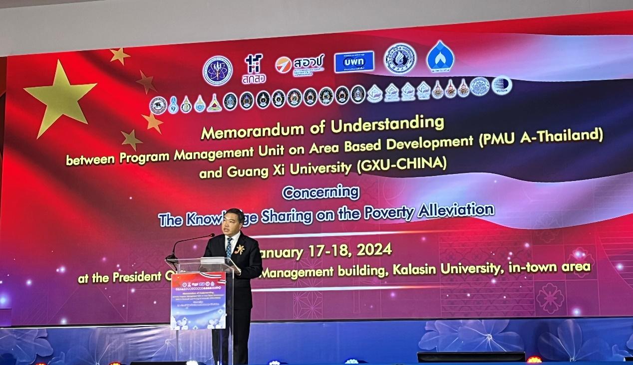 From 17th to 18th, invited by the Program Management Unit on Area Based Development of Thailand (PMU-A), Xiao and his delegation attended the signing ceremony of poverty reduction governance cooperation and knowledge sharing between the Unit and Guangxi University of China held in Kalasin University in Thailand. Mr. Sanan Pongaksorn (the Governor of Kalasin Province), Ms. Pasupha Chinvarasopak (Minister Counsellor of the Embassy of Thailand in China), Mr.Chartchai Phom-Lert (Chairperson of the Executive Committee of Executive Director of PMU-A), Dr. Kitti Sajjawattana (Director of PMU-A), Assoc. Prof. Jirapun Huaisan (the President of the Kalasin University), Asst. Prof.Dr.Vichayut Juntaree, (the Vice President of Kalasin University), Mr. Wang Qiang (First Secretary of the Embassy of China in Thailand), and officials from more than 20 universities in Thailand attended the signing ceremony and exchanged experiences on poverty reduction. The delegation also visited the "Poverty Reduction Project Achievement Exhibition", "A Learning City-Kalasin" and "Cultural Landscape Management and Community Culture Street". Xiao Jianzhuang said that Guangxi University, as the top university in Guangxi, is willing to participate in the construction of key poverty alleviation projects in Thailand, and looks forward to further strengthening cooperation with PMU-A and universities on knowledge sharing about poverty reduction, scientific and technological innovation and talent training, so as to better implement the "Belt and Road" Initiative and build a China-ASEAN community with a shared future.