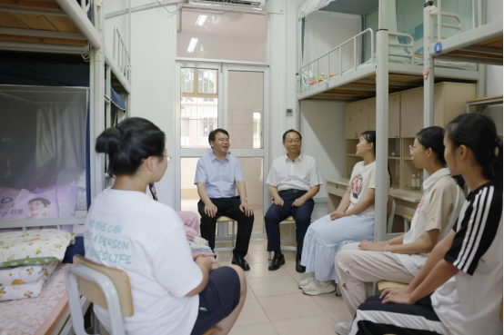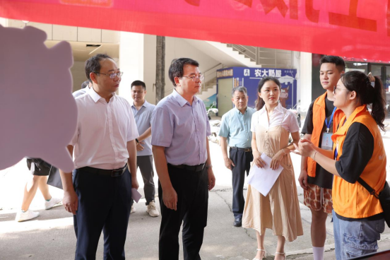 Party Secretary Li and President Han respectively led staff groups to inspect the freshmen welcoming activities at the centralized welcome site of the North Campus, Beiyuan Dining Hall, the South Gate, and the West Campus Gymnasium. The staff also visited new students in their dormitories. Vice President of GXU Yu Wenjin, who is also a member of the CPC GXU Committee Standing Committee, participated in the freshmen welcome activities.
