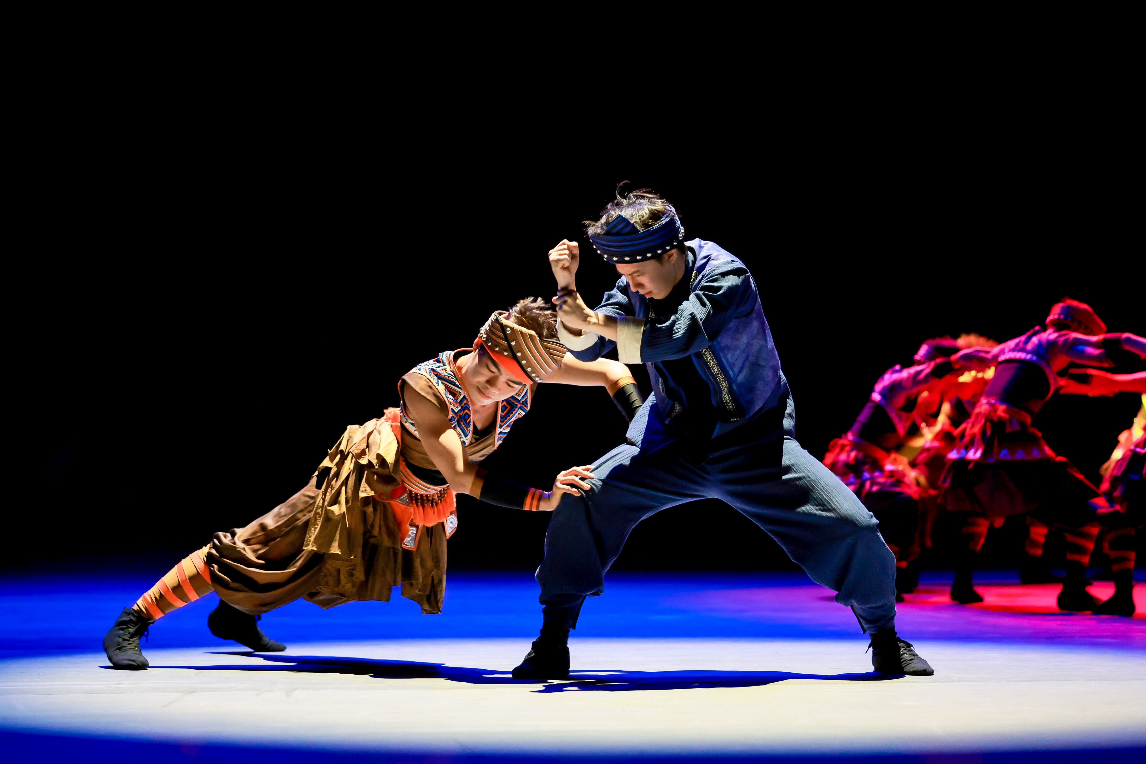 The Drum Forgers, under the creative guidance of Professor Fu Yiling from the School of The Arts of Guangxi University, is based on a true story and utilizes Zhuang dance as its core element. Focusing on the Guangxi Intangible Cultural Heritage—copper drum casting technique, the piece employs artistic narration to vividly portray the story of a Zhuang master and apprentice who successfully revived the long-lost Zhuang copper drum casting technique in modern times. It depicts a touching journey of exploration, failure, success, and inheritance, paying tribute both to the contemporary craftsman spirit of striving for excellence and to the enduring vitality of ethnic culture passed down through generations. The work conveys the young generation's reverence for traditional culture and their sense of responsibility in its transmission.