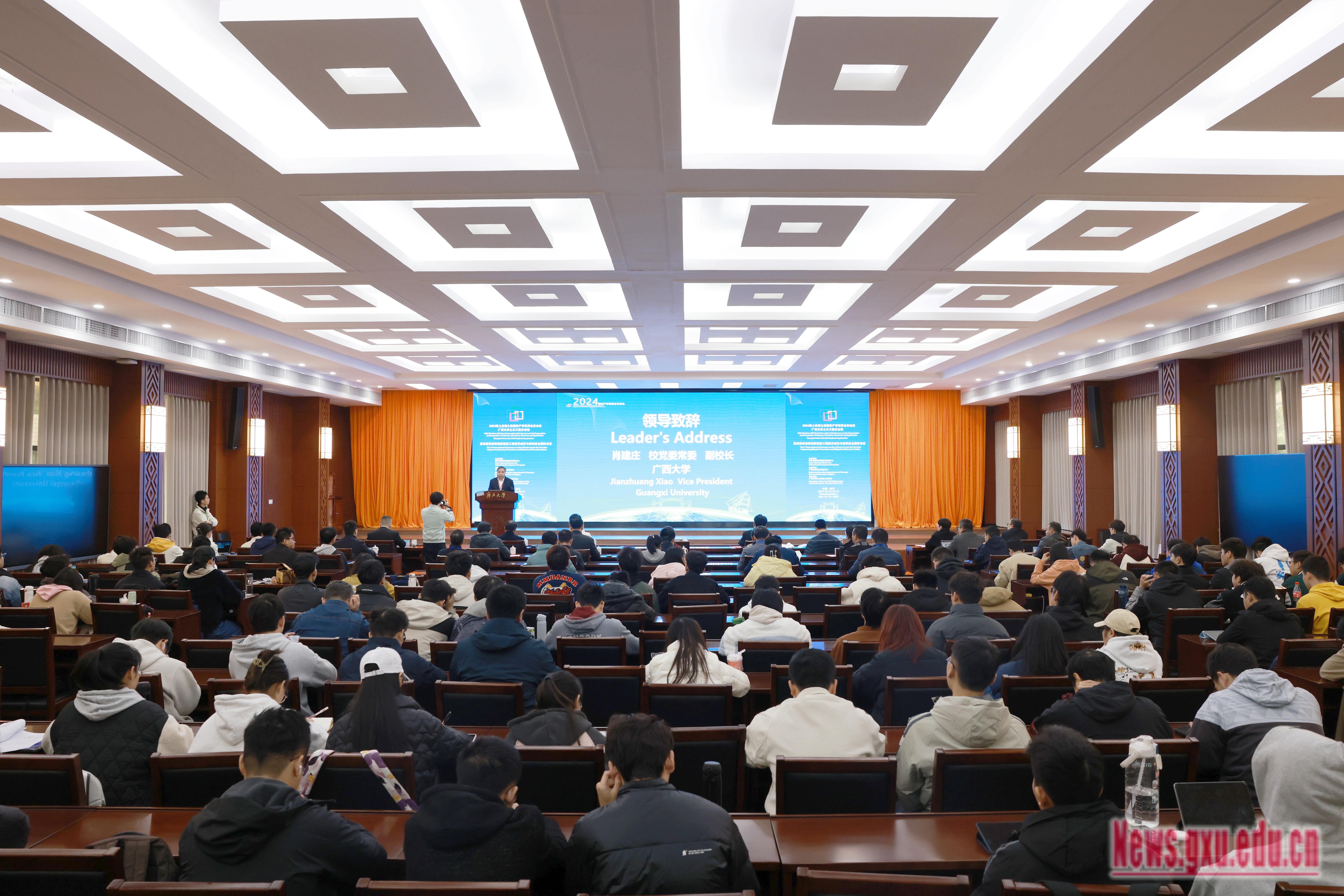 ระหว่างวันที่ 13-14 ธันวาคม การประชุมนานาชาติว่าด้วยความร่วมมือระหว่างภาคการศึกษา อุตสาหกรรม การวิจัย และการประยุกต์ใช้ เส้นทางสายไหมทางทะเล ปี 2024 – การประชุมนานาชาติว่าด้วยวิศวกรรมการป้องกันและลดภัยพิบัติและความปลอดภัยของโครงสร้าง ช่องทางบก-ทะเลสายใหม่ภาคตะวันตก ครั้งที่ 4 ได้จัดขึ้น ณ มหาวิทยาลัยกว่างซี โดยได้รับการชี้นำจากศูนย์วางแผนการก่อสร้างและการพัฒนา สังกัดกระทรวงศึกษาธิการ และสำนักการศึกษา เขตปกครองตนเองกว่างซีจ้วง จัดโดยมหาวิทยาลัยกว่างซี และดำเนินการโดยคณะวิศวกรรมโยธาและสถาปัตยกรรม มหาวิทยาลัยกว่างซี โดยมีนายเซียว เจี้ยนจวง กรรมการประจำพรรคคอมมิวนิสต์ของมหาวิทยาลัย และรองอธิการบดี ได้เข้าร่วมพิธีเปิดและกล่าวสุนทรพจน์ในครั้งนี้