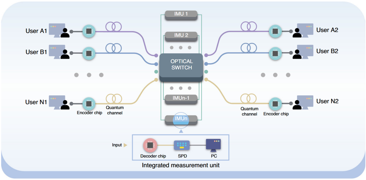 Figure 1. Diagram of the chip-integrated QDS network using a star-shaped topology.