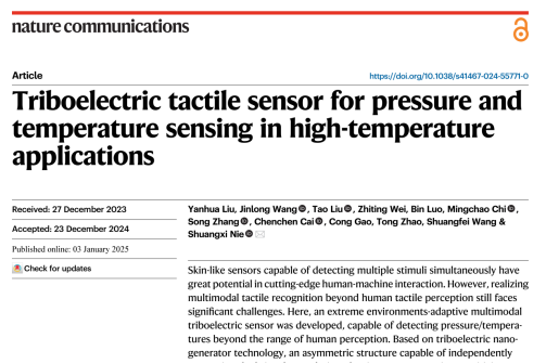 Recently, the group of “Advanced Wood Fiber Materials” in the School of Light Industry and Food Engineering of the University has made great progress in the field of paper-based functional materials, and the research results have been published in the top international academic journal Nature Communications under the title of “Triboelectric tactile sensor for pressure and temperature sensing in high-temperature applications”. The first author of the paper is Liu Yanhua, a PhD student of the class of 2022, and the corresponding author is Nie Shuangxi, a professor of the School of Light Industry and Food Engineering. Guangxi University is the only completion unit of the paper.