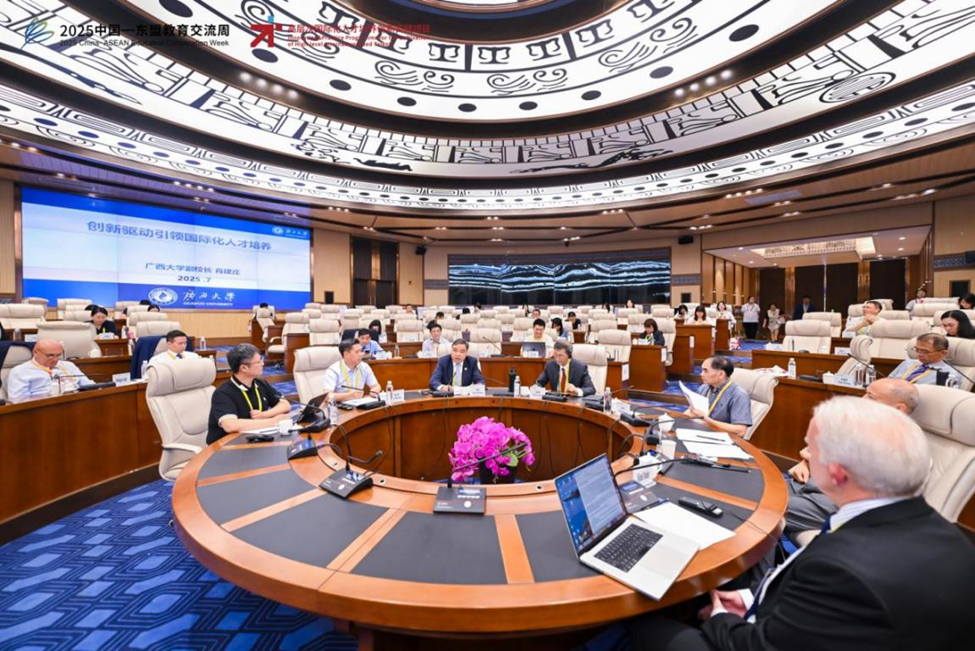 នៅថ្ងៃទី 25-26 ខែកក្កដា សាកលវិទ្យាល័យ Guangxi ត្រូវបានអញ្ជើញឱ្យចូលរួមក្នុងកិច្ចសហប្រតិបត្តិការអប់រំចិន-អាស៊ានឆ្នាំ 2025 ដែលធ្វើឡើងនៅទីក្រុង Guiyang ។ លោក Xiao Jianzhuang នាយករងនៃសាកលវិទ្យាល័យក៏បានចូលរួមក្នុងសន្និសីទអន្តរជាតិស្តីពីការបណ្តុះបណ្ដាលទេពកោសល្យអន្តរជាតិកម្រិតខ្ពស់ដែលរៀបចំដោយមជ្ឈមណ្ឌលសម្រាប់ការផ្លាស់ប្តូរប្រជាជននឹងប្រជាជនរបស់សមាគមចិន-អឺរ៉ុបនៃក្រសួងអប់រំ ក៏ដូចជាវេទិការងស្តីពី "ការកសាងទីក្រុងមជ្ឈមណ្ឌលអប់រំថ្នាក់តំបន់សំខាន់ៗ និងការលើកកម្ពស់ការបើកចំហកម្រិតខ្ពស់នៅក្នុងតំបន់ចិន-អាស៊ាន"ផងដែរ។
