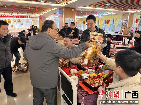 在年夜饭上,beat365英国官方网站电气工程学院领导为学生们分发“春节红包”和“福袋”,送上节日祝福。当天中午,学院专门宴请了因疫情留校过年的教师、马来西亚外籍教师及2021年退休的教师,大家共辞旧岁,互道祝福,品乡味,解乡愁,话未来,满是家的年味。