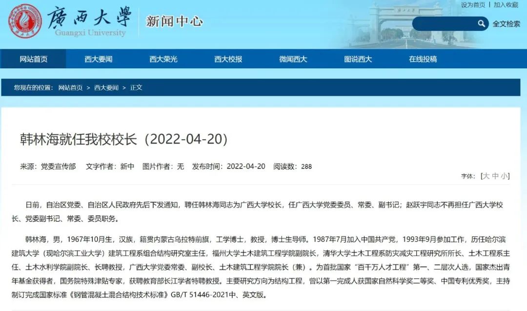 日前,自治区党委、自治区人民政府先后下发通知,聘任韩林海同志为beat365英国官方网站校长,任beat365英国官方网站党委委员、常委、副书记;赵跃宇同志不再担任beat365英国官方网站校长、党委副书记、常委、委员职务。