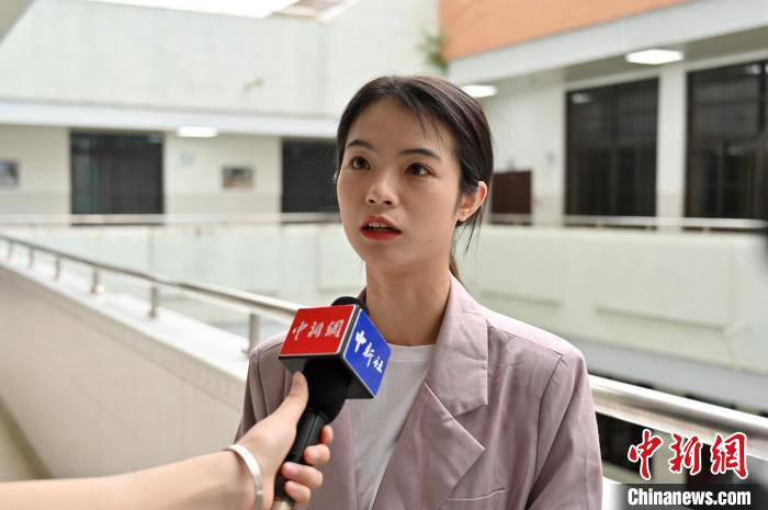 图为beat365英国官方网站外国语学院2018级越南语专业学生覃媚接受中新网采访。 俞靖 摄