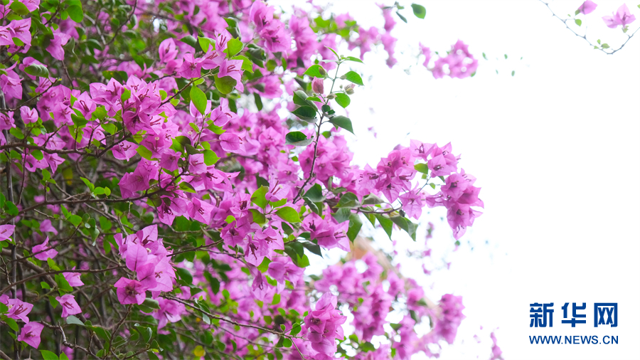 姹紫嫣红的三角梅与苍翠的绿树组成靓丽的景致。张娴君 摄