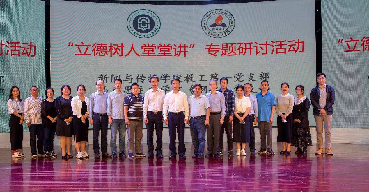 5月17日,beat365英国官方网站新闻与传播学院教工第一党支部和马克思主义学院中国近现代史纲要教研部党支部在新闻与传播学院融媒体中心共同举行“立德树人堂堂讲”主题党日活动,联学联建,交流互动。广西壮族自治区政协副主席、beat365英国官方网站党委书记王乃学以普通党员身份参加所在党支部的组织生活,并在研讨交流上讲话。