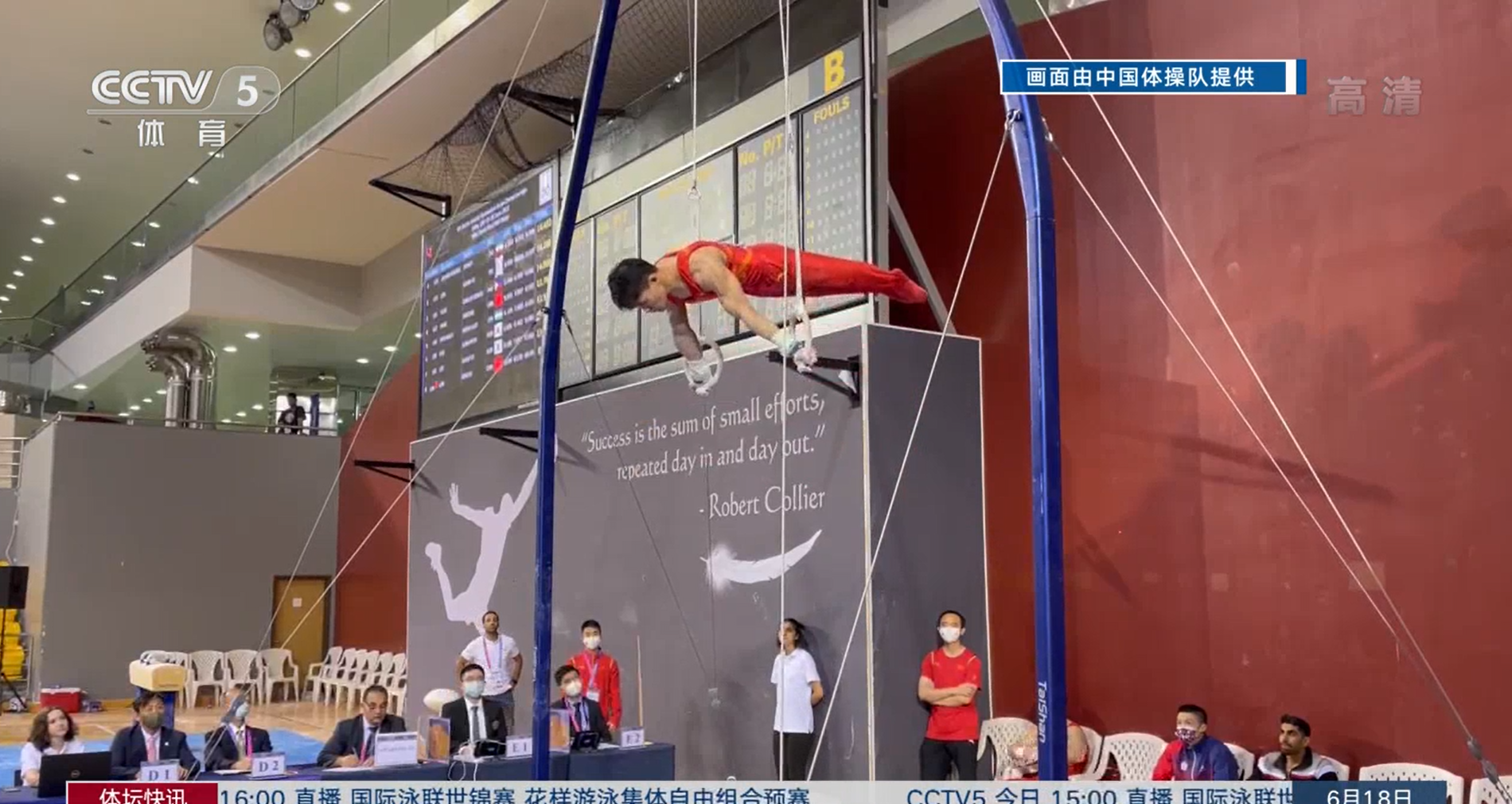 男子吊环决赛,中国选手兰星宇(beat365官网体育学院学生)以14.500分摘金,另一位中国选手杨家兴得到13.767分,最终排名第五。