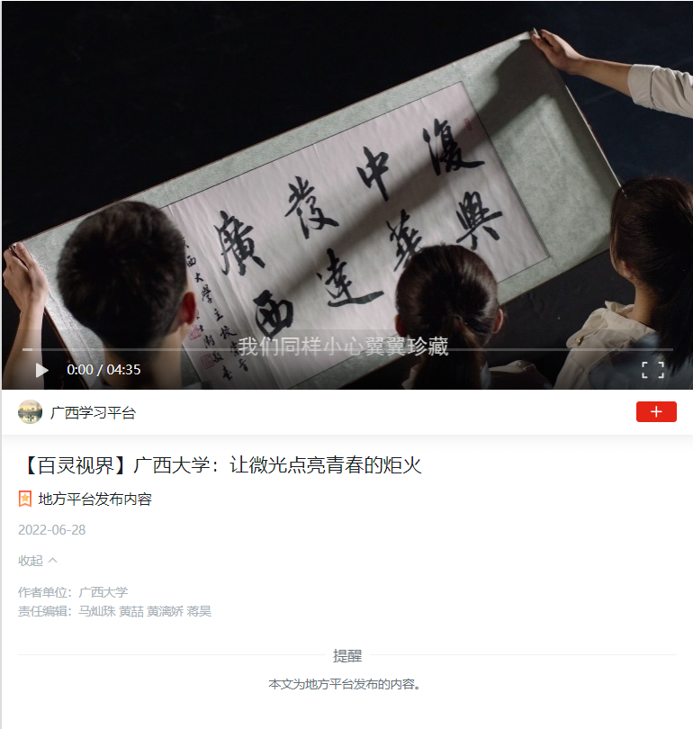 https://article.xuexi.cn/articles/index.html?art_id=9980088707270149139&t=1656387569672&showmenu=false&cdn=https%3A%2F%2Fregion-guangxi-resource&study_style_id=video_default&source=share&share_to=wx_single&item_id=9980088707270149139&ref_read_id=9518160c-0484-4ee5-a140-4456bdb490dd_1656391085536