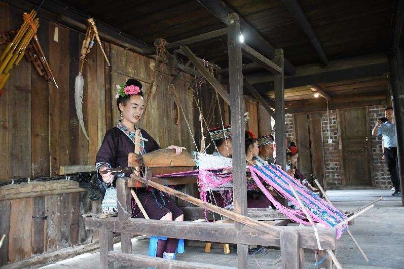 7月8日,实践队来到梦呜苗寨体验非遗制作工艺,探寻芦笙、苗银、苗族织锦和亮布等非遗文化的发展历程及传承情况,深入了解梦呜苗寨通过产业带动扶贫的举措和经验。据了解,梦呜苗寨是自治区易地移民搬迁扶贫试点,以民族风情展示和民俗休闲体验为特色,把苗族村寨独具特色的非遗文化资源转化为促进传承发展、提供就业岗位、增加群众收入的新路径,使脱贫攻坚成果与乡村振兴有效融合。