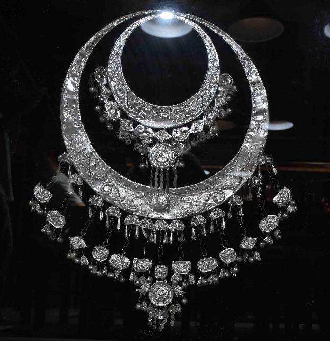 在苗族银饰非遗体验馆内,精美的银饰吸引了同学们的目光。苗银锻造技艺传承人马贵兵向同学们介绍,银饰的制作要经历铸炼、锤打、拉丝、搓丝、掐丝、镶嵌加固等程序,才得以形成一件精美的苗族银饰。