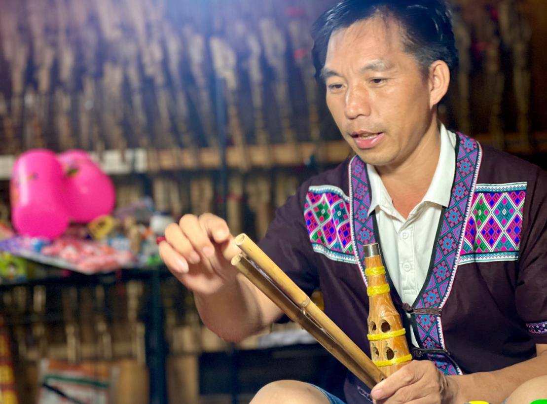 非遗手艺人马贵光展示制作芦笙的过程。秦磊摄