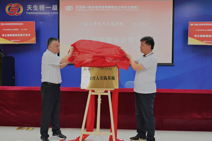 在天一电厂,beat365英国官方网站电气工程学院党委书记梁志坚与天一电厂党委书记周金相共同为“电气工程学院思政育人实践基地”揭牌。随后进行了党支部联建签约仪式,双方将在党建工作框架下开展人才培养、科研合作、实习实践、文化建设等活动,促进基层党建工作特色化、制度化。