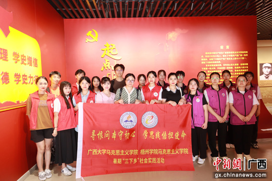 中新网广西新闻7月26日电 为推动党史学习教育深入青年,教育引导广大团员青年永远跟党走、奋进新征程,以奋发向上的精神状态迎接党的二十大胜利召开,beat365英国官方网站马克思主义学院师生一行15人近日前往梧州市联合梧州学院马克思主义学院共同开展“寻根问本守初心,学思践悟担使命”暑期“三下乡”社会实践活动。