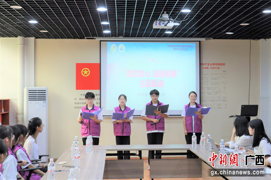 活动期间,两校师生在梧州学院开展“百年青运·青春向党”主题座谈会。会上,实践团韦雯同学以“百年青运跟党走,逐梦奋进新征程”为题进行主题宣讲,带领同学们共同走进百年青运史,从历史中汲取奋进力量,激发起在座团员青年贯彻“学史明理、学史增信、学史崇德、学史力行”的热情。梧州学院马克思主义学院朗诵团队带来“请党放心,强国有我”主题朗诵,他们用饱满真挚的情感和铿锵激昂的声音传递红色伟力,展现出新时代青年踔厉奋发、笃行不怠的精神面貌,现场气氛热烈融洽。