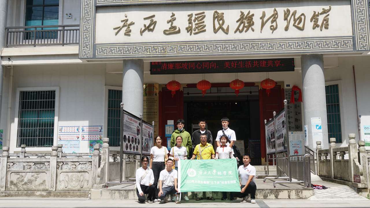 边陲那坡,是个历史悠久、民族资源丰富的小城。在那坡县团委和驻村第一书记带领下,实践团师生走进了那坡县边疆民族博物馆、烈士陵园陈列馆与那坡彝族生态博物馆。通过一幅幅图片、一件件实物,实践团师生了解到壮、苗、彝等不同民族的文化风俗,坚定了科技兴林助力乡村振兴的决心。