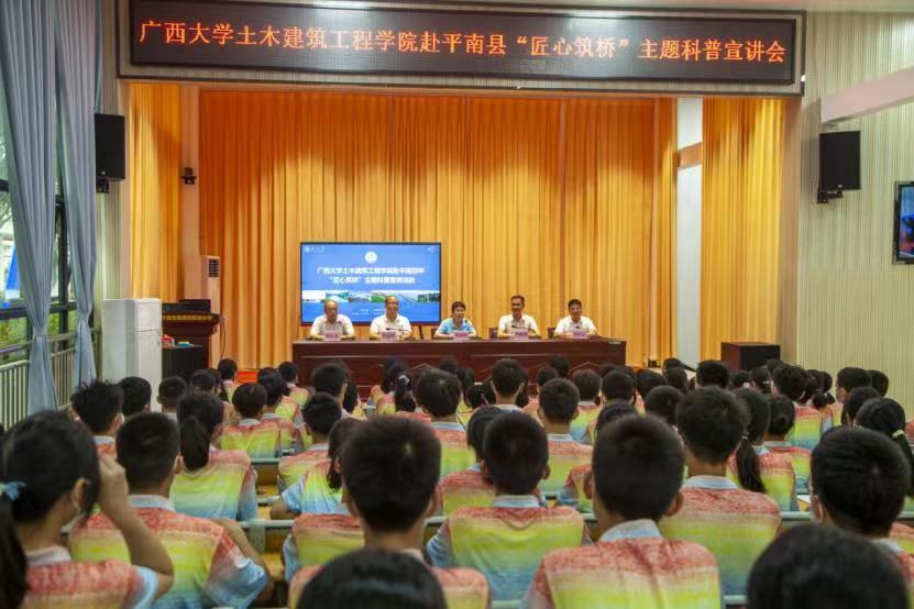 8月25至26日,beat365英国官方网站“匠心筑桥”宣讲团来到贵港市平南县,通过桥梁知识科普宣讲会,参观平南三桥,搭桥建模比赛等多种形式开展社会实践活动。