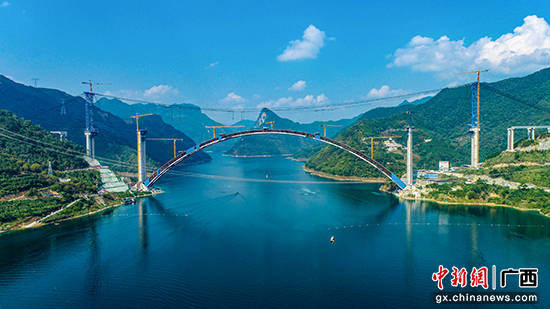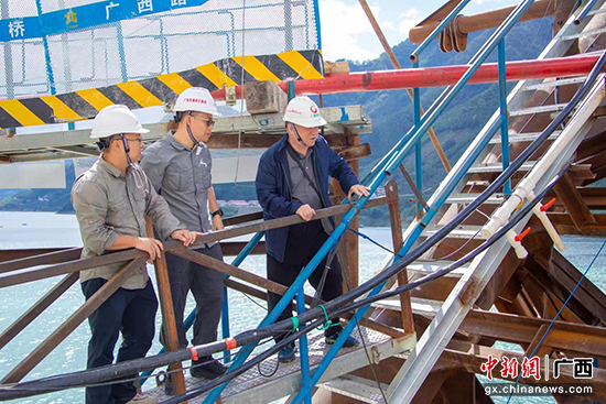 这是投资单位广西交通投资集团有限公司、广西南天高速公路有限公司,设计单位广西交通设计集团有限公司,技术咨询单位四川省公路规划勘察设计研究院有限公司,施工单位广西路桥工程集团有限公司,监理单位广西桂通工程管理集团有限公司,监控单位广西交科集团有限公司、广西交通工程检测有限公司等合作单位与beat365英国官方网站同舟共济、精工匠造的成果,标志着大桥建设突破关键科技难关、完成关键节点任务,进一步取得阶段性进展,为后续施工建设夯实了基础,大桥建设将进入外包砼腹板环施工阶段。