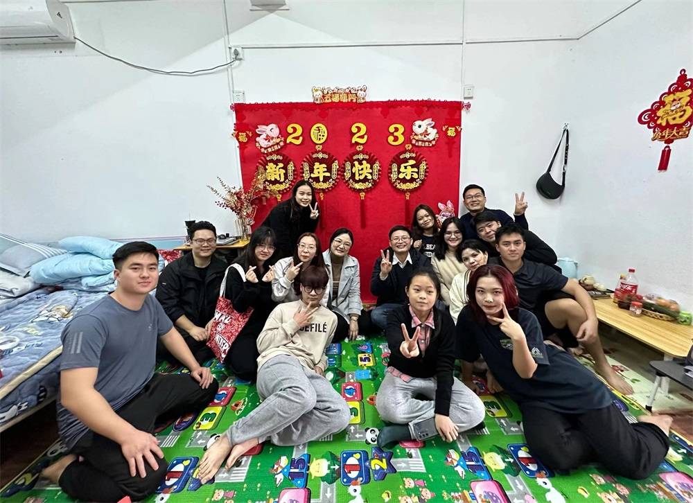 ▲南宁师范大学留校学生聚在一起欢度春节。校方供图