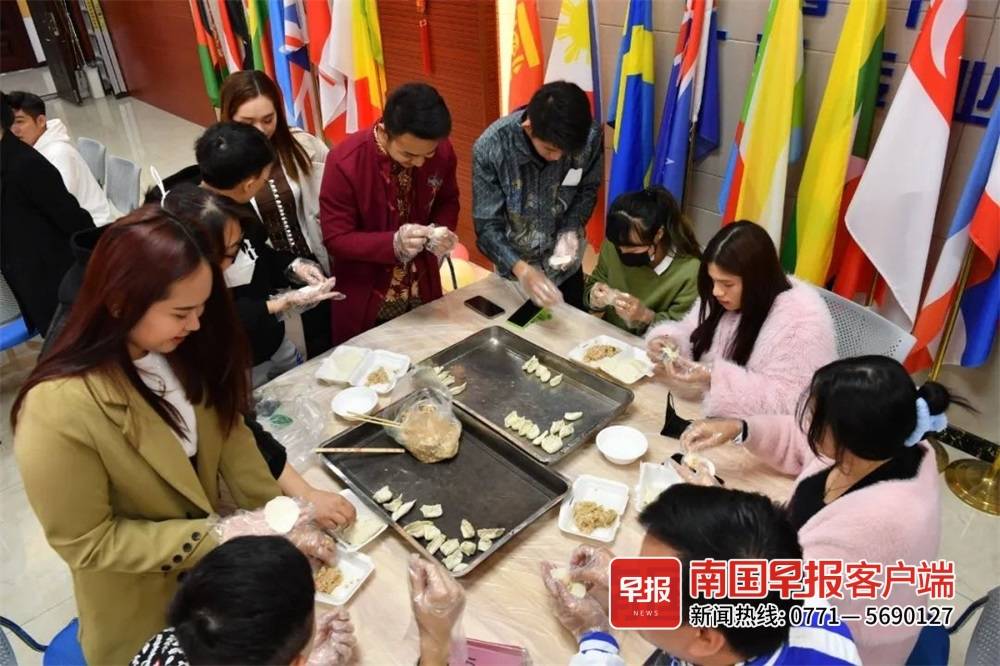 ▲广西民族大学留学生体验包饺子过春节。校方供图