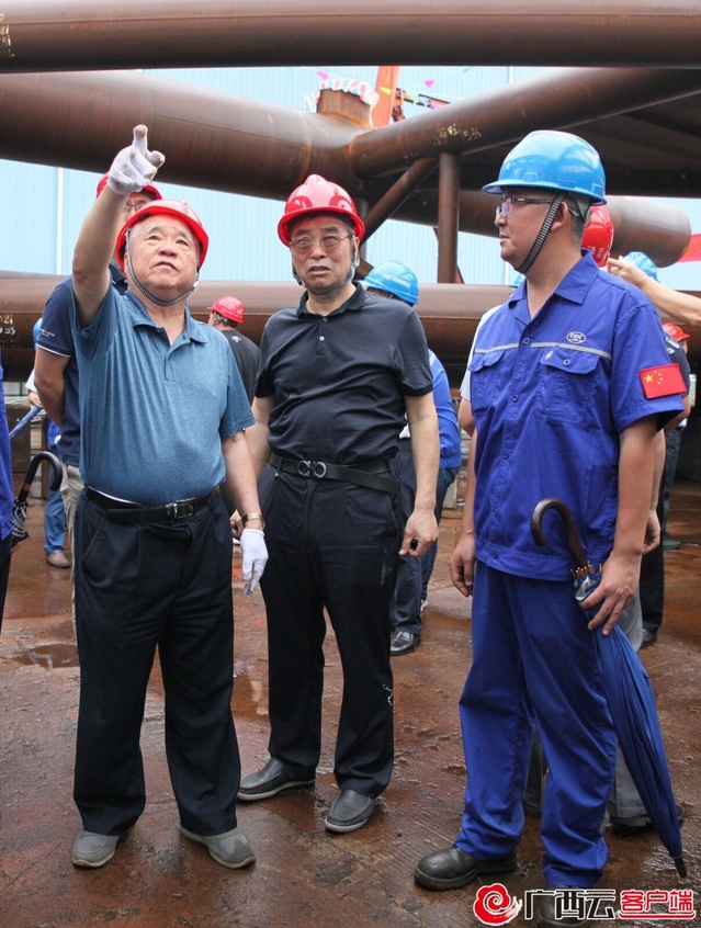 郑皆连院士(左一)在平南三桥加工制造现场。beat365英国官方网站供图