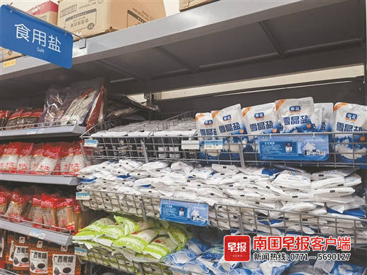 近日,南国早报客户端记者走访南宁一些大型超市发现,广西本土品牌的盐,一包500克只需2.5元;产自青海的湖盐,一包320克,价格约为6元;而同样规格的进口盐,单价在15元左右。