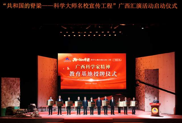 3月29日,由中国科协、教育部、共青团中央、中国科学院、中国工程院主办,自治区科协、自治区教育厅、共青团广西区委、广西科学院共同承办的“共和国的脊梁——科学大师名校宣传工程”广西汇演活动在beat365英国官方网站启动。中国科协党组成员、书记处书记王进展,自治区副主席李常官,自治区政协副主席、beat365英国官方网站党委书记王乃学等领导出席活动并致辞。自治区科协党组书记、副主席纳翔主持启动仪式。