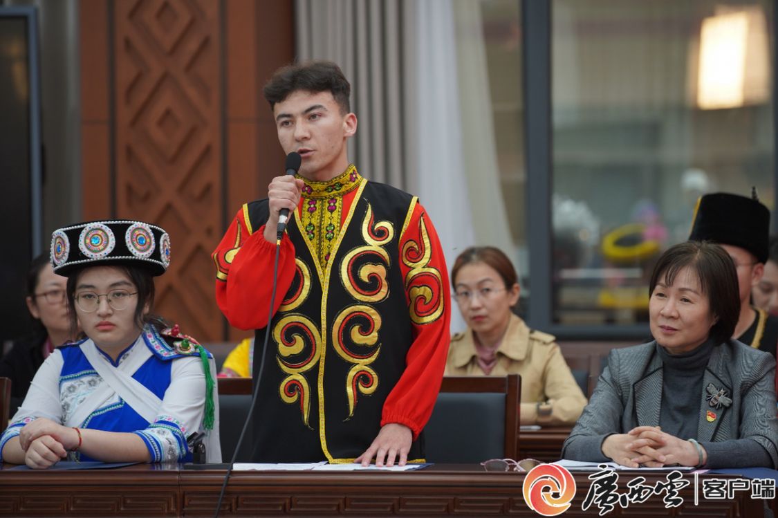 座谈会上,来自维吾尔族、毛南族、壮族等少数民族和汉族的师生们纷纷畅所欲言,讲述自己和身边的民族团结动人故事、真诚感悟。