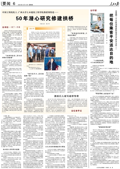上世纪七八十年代,郑皆连已参与修筑大桥40余座,长度达2万多延米。当时广西七成公路大桥都采用了他的技术。可他常说,要善于从传统技术中汲取创新的力量。“如果你对别人坚信不疑,那你就不可能超越他。”