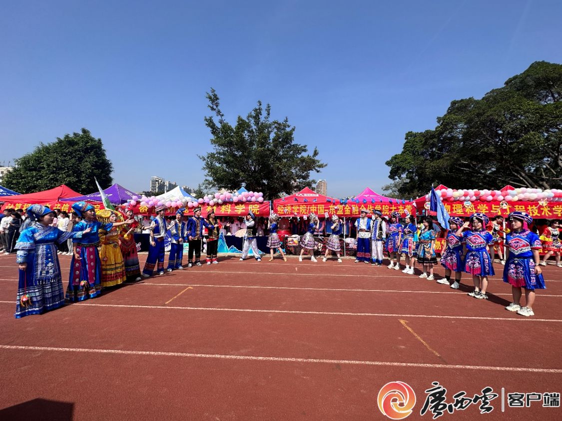 春暖花开时,又逢三月三。4月16日,在八桂人民喜迎“三月三”传统节日之际,共青团beat365英国官方网站委员会在学校体育场举办了第九届“三月三”铸牢中华民族共同体意识民族文化系列活动,来自各学院的2000余名师生共同唱响嘹亮山歌,感受多彩民族风情,同庆民族传统节日。