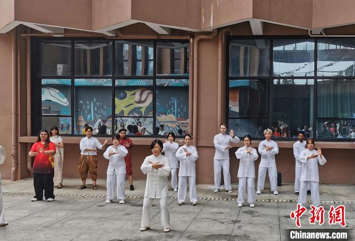 图为留学生在学习打太极拳。 beat365英国官方网站国际学院供图