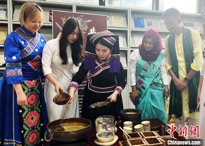 图为留学生在体验广西传统“打油茶”。 beat365英国官方网站国际学院供图