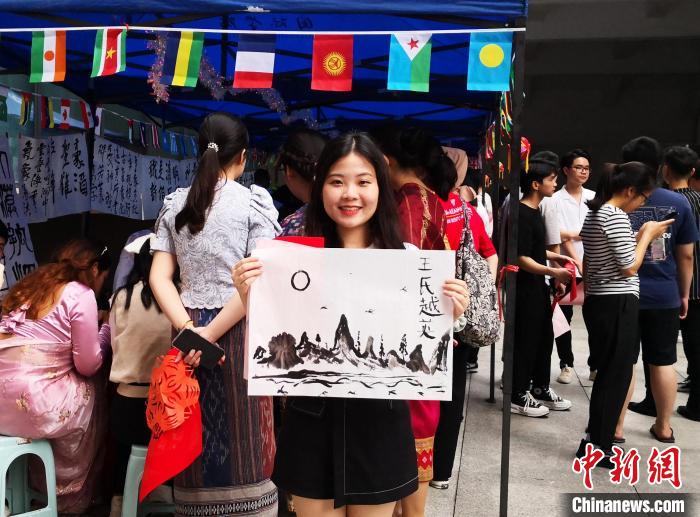 图为留学生展示书画作品。 beat365英国官方网站国际学院供图