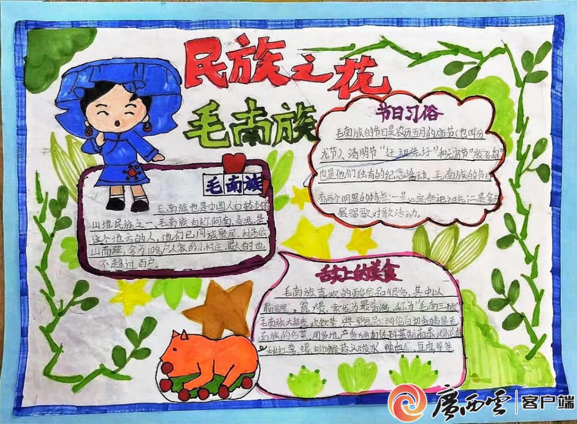 二年级小学生绘制的民族知识手抄报。南宁市高新小学供图