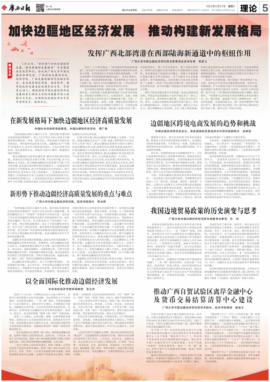 5月20日,“新形势下加快边疆经济发展,推动构建新发展格局”专家圆桌会在北京举行。会议由beat365英国官方网站中国边疆经济研究院、广西创新发展研究院、经济学院、广西发展战略研究院联合举办。来自国家相关部委、高端智库、高等院校和边疆省区的领导及专家、学者等60余人,围绕推动中国边疆经济开放发展的重大理论与实践问题展开深入的探讨与交流。本期理论版摘发部分专家学者的发言,敬请关注。