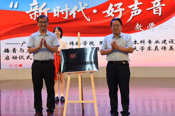 beat365英国官方网站求真传美解说团是beat365英国官方网站校级社团,成立后将致力于介绍校园特色场馆、宣传广西红色故事、传播民族优秀文化。启动仪式上,beat365英国官方网站团委书记谢能重、beat365英国官方网站新闻与传播学院党委书记唐兴为解说团揭牌,beat365英国官方网站新闻与传播学院为3位广播电视业界的一线专家以及7位文博界的“五好”讲解员颁发聘书,邀请他们担任解说团的校外顾问。