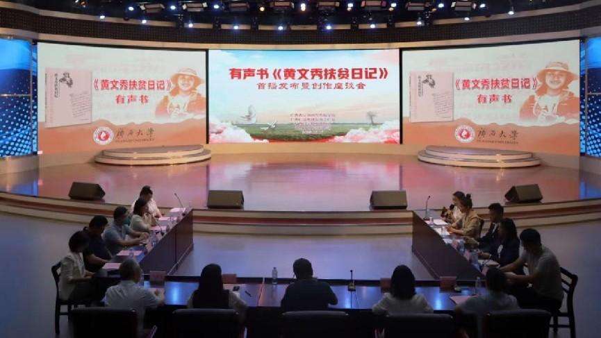 图书《黄文秀扶贫日记》反映了黄文秀的学习、工作和奋战在脱贫攻坚一线的历程及取得的成效。在广西壮族自治区党委宣传部的指导和支持下,学院联合主流媒体录制了有声书《黄文秀扶贫日记》,选取黄文秀20篇驻村日记,制作成《新时代的青春之歌》《初到百坭村》《新时代的长征》等14期音频作品。有声书《黄文秀扶贫日记》通过师生们的有声播讲,以配乐朗读的方式,生动刻画展现黄文秀扶贫路上的所行所思,展现黄文秀不忘初心、牢记使命、勇于担当、甘于奉献的优秀品质。