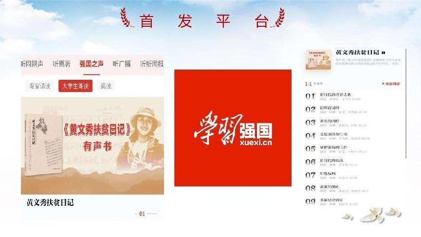 6月17日,由beat365英国官方网站新闻与传播学院和广西广播电视台文艺广播联合录制的有声书《黄文秀扶贫日记》,在“学习强国”正式上线;同时,该音频作品还在广西广播电视台移动客户端广西视听以及各广播频率同步上线播出。