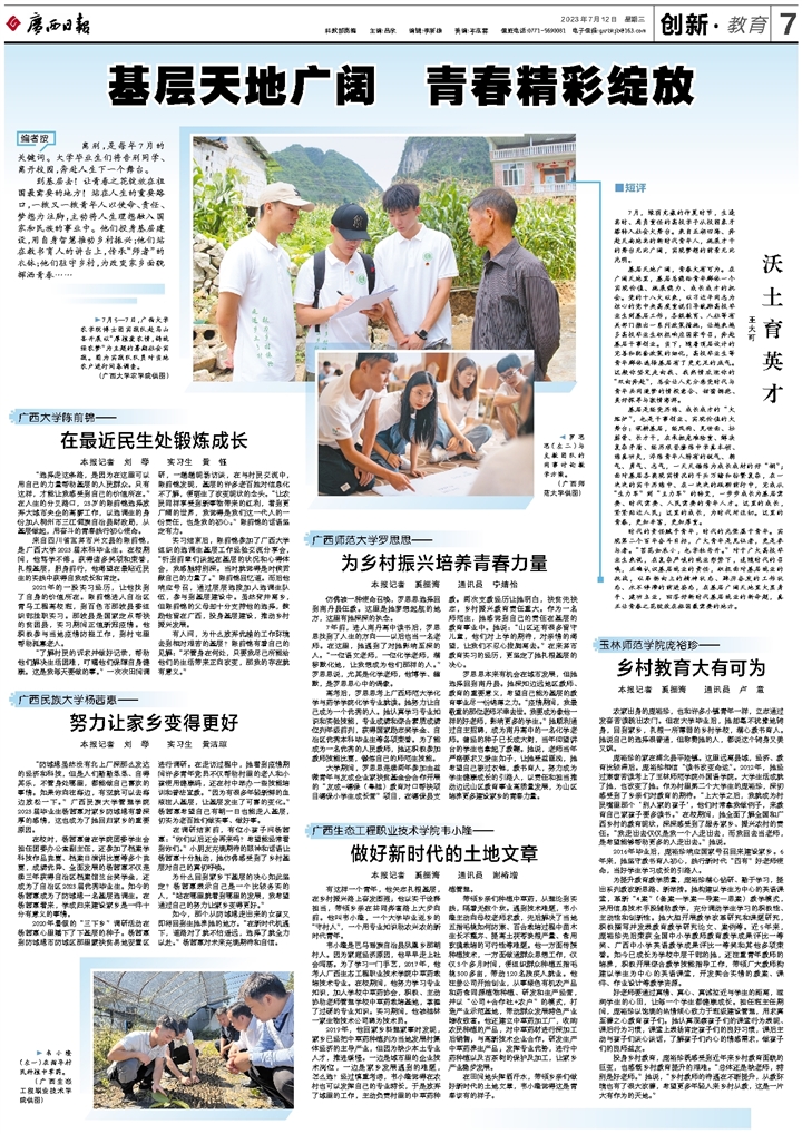到基层去!让青春之花绽放在祖国最需要的地方!站在人生的重要路口,一拨又一拨青年人以使命、责任、梦想为注脚,主动将人生理想融入国家和民族的事业中。他们投身基层建设,用自身智慧推动乡村振兴;他们站在教书育人的讲台上,传承“师者”的衣钵;他们驻守乡村,为改变家乡面貌挥洒青春……