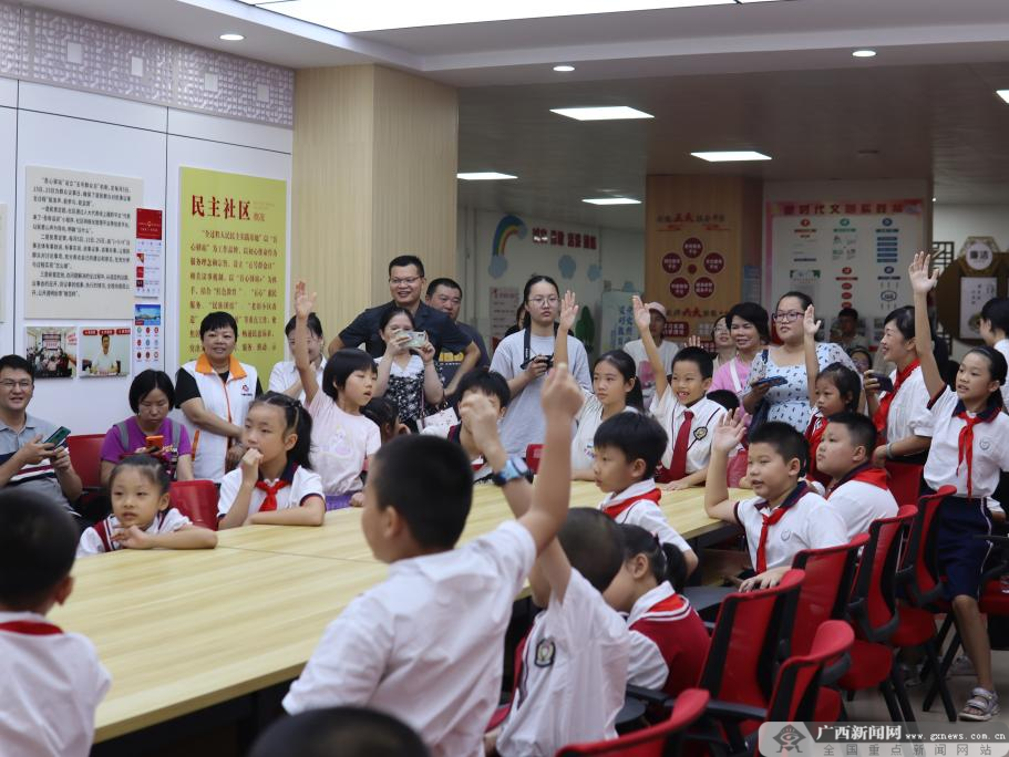 实践团还走进万秀区民主社区居委会,和少先队员一起聆听桂北社区退休党员“爱心姑妈”梁焕珍和梧州市“西江青年先锋”梁木水庭长讲述志愿服务故事和清廉事迹,共同学习他们为民服务、为民奉献的崇高品质。实践团成员刘洧杰表示:“‘爱心姑妈’梁焕珍的分享让我认识到身为一名党员在志愿服务上应有的担当,日后我也会更多投身志愿服务工作,带动更多同学加入志愿者队伍,为志愿服务注入新鲜血液;同时我们也要清正做人、廉洁做事,向优秀青年代表学习,让廉洁文化浸润人心。”