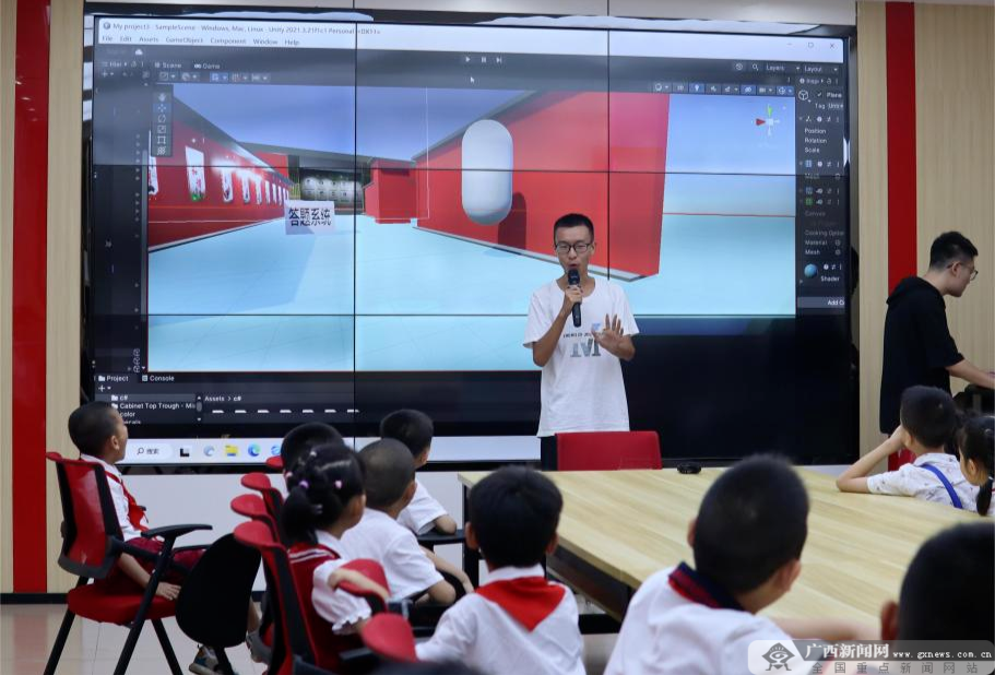 为了进一步推动创新创业同红色文化教育和宣传相结合,促进梧州市万秀区红色文化的传播和发展,实践团在民主社区居委会向少先队员和家长们介绍了团队自制的基于虚拟现实技术的beat365英国官方网站校史场馆虚拟旅游系统。该系统以beat365英国官方网站校史馆为基础构建模型,使用者以第一人称视角浏览场馆,通过人机交互实现参观者与场景的互动,最后通过设置答题模式提升学习成果。活动中少先队员们热情高涨,纷纷举手抢答,并且参与活动的少先队员、家长和工作人员对于这种寓教于乐的模式表示肯定。