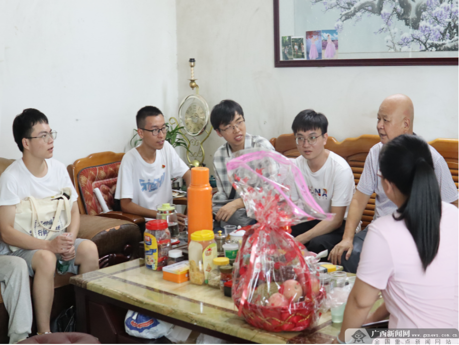 为了体悟红色文化,感受党的红色精神伟力,实践团访谈红色人物,挖掘红色故事,在桂北社区党委副书记卢娟的带领下,师生们拜访了老党员夫妻周海豪、杨翠莲。师生们同两位老党员从日常生活谈到梧州的发展变迁,交流热烈,对周海豪与时俱进、永远跟党走的党员精神心生敬佩。实践团成员樊鹏辉表示:“通过这一次拜访,我感受到了一个老共产党员对于党、对于祖国的忠诚之心,紧跟党的步伐,退休后仍心系梧州发展,保持不断学习的态度,以饱满的热情面对生活。听他讲述梧州的变化,我意识到我们的幸福生活来之不易,我们作为学生也更有动力朝着成为一名优秀党员的目标而奋斗!”