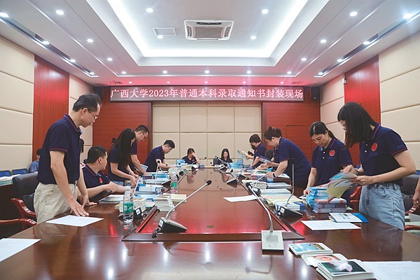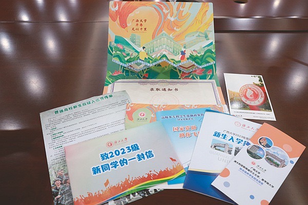 昨日9时,beat365英国官方网站2023年第一批本科新生录取通知书开始封装,下午3时左右全部封装完毕,3972份通知书当晚通过邮政向全国录取新生发出。地址在南宁市区的录取新生最快今日上午就能收到。