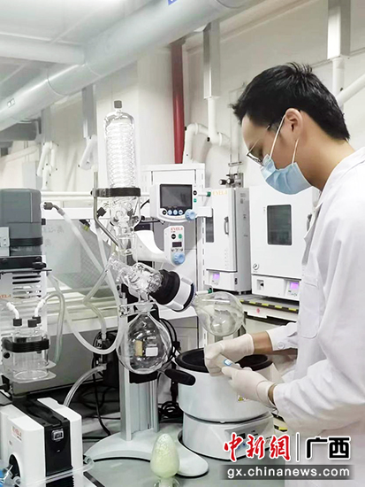 “只争朝‘稀’”项目团队负责人甘钧元进行稀土氧化钪提纯实验。黄方迪 摄