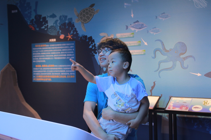 在“探秘beat365英国官方网站海洋科教馆”环节,参观者们在“蓝色梦想·科普先行”海洋保护与知识科普志愿服务队成员的带领下,深入学习了海洋科教馆蔚蓝之境、海洋之魅、研海之行、探海之道、筑梦之基等五个主题的知识。通过馆内互动式、沉浸式等AR高科技设备,参观者更直观地感受到“海底种珊瑚”和“深海勇士号”深潜的奥妙。珊瑚养殖室让参观者们“零距离”接触“海洋中的热带雨林——珊瑚礁”,绚丽多姿的珊瑚以及活泼可爱的海鱼深深吸引了参观者们的目光。在“我问你答海洋知识竞赛”,参与者积极参与答题。