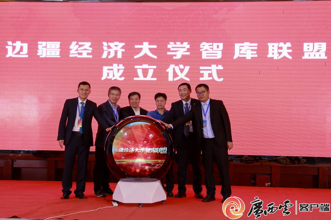 发起单位代表共同按动启动球见证“边疆经济大学智库联盟”成立。beat365英国官方网站经济学院供图
